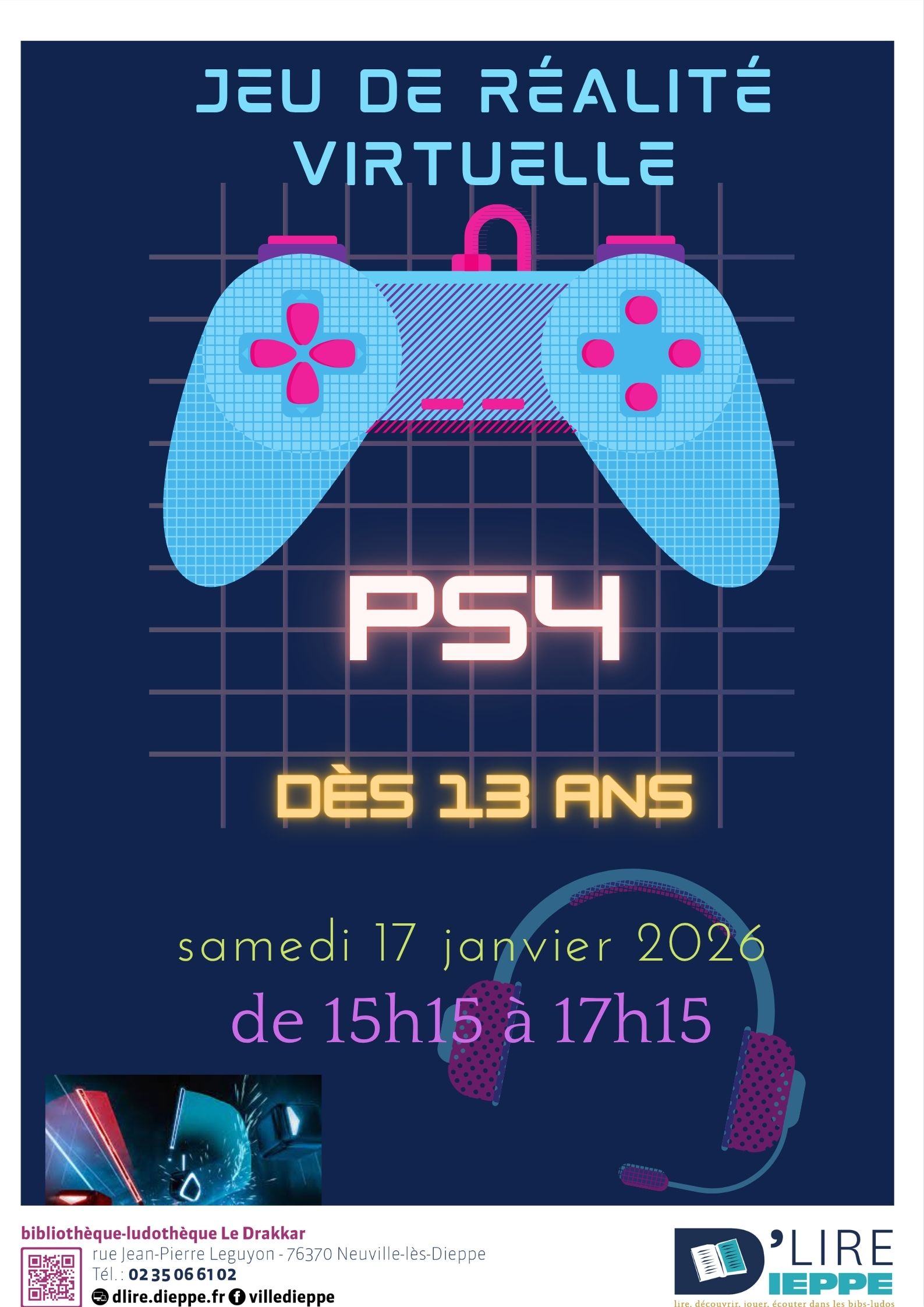 Viens découvrir le principe de la réalité virtuelle, et expérimenter des jeux sur PS4.