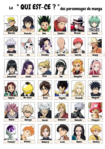 Découvre un nouveau jeu de " qui est-ce ? " avec les personnages de mangas célèbres.